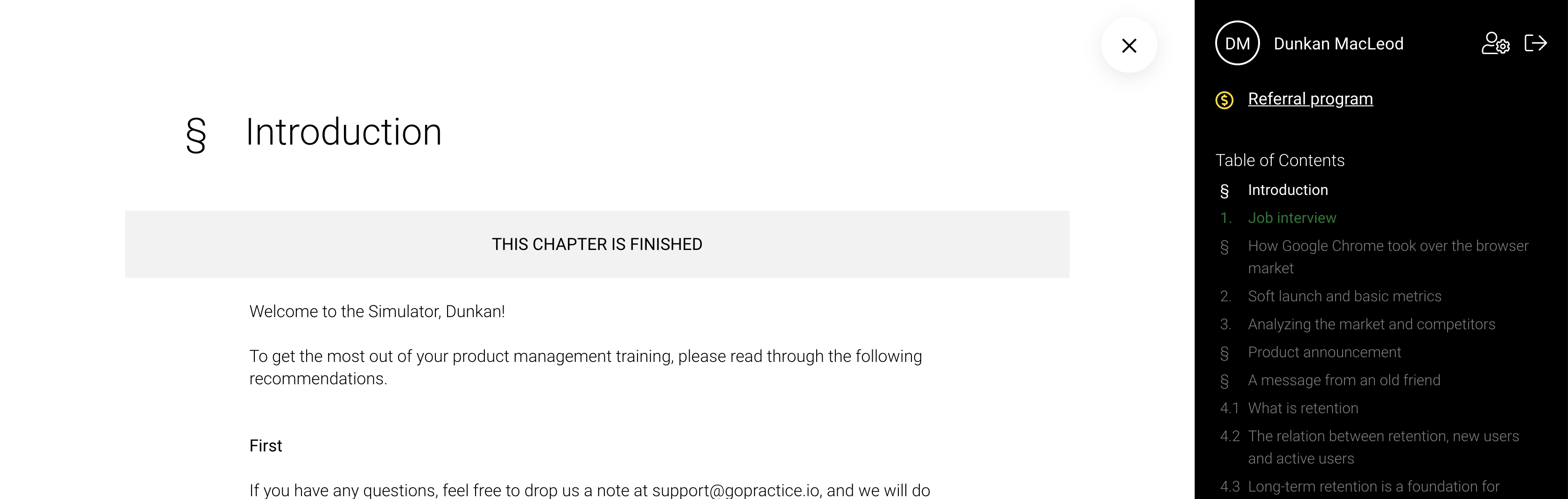 - Share parts of the content from the blog https://gopractice.io/course/pm/ and then provide a link to the Simulator course https://gopractice.io/course/pm/