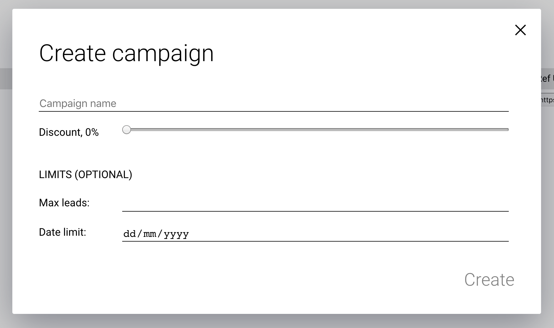 In your account, you can create special partner links. To create a link, click on “Create Campaign” field and fill in the required fields.